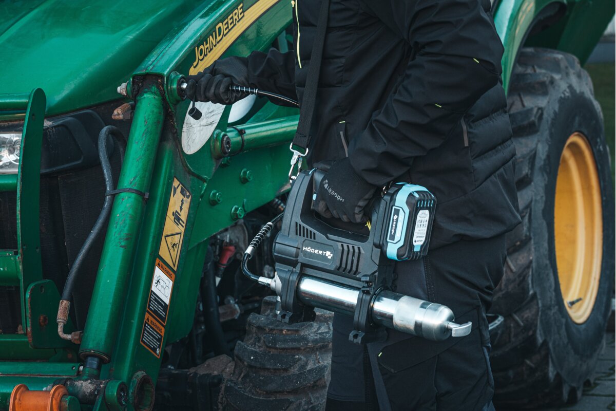 Απαραίτητο εργαλείο για συνεργεία, εργοτάξια και αγροτικές εργασίες. Βασικά χαρακτηριστικά: Συμβατό με φυσίγγια γράσου 400 ml ή με χύμα γράσο 420 ml. Απόδοση 280 g/min και μέγιστη πίεση 690 bar για αποτελεσματική λίπανση. Περιστροφικός διακόπτης για ακριβή ρύθμιση ταχύτητας. Βαλβίδα εξαέρωσης για εύκολη απομάκρυνση παγιδευμένου αέρα. Κλείδωμα σκανδάλης για αποτροπή τυχαίας ενεργοποίησης. Βάση στήριξης σωλήνα για αποφυγή μόλυνσης του ακροφυσίου ή του χώρου εργασίας. Ισχυρός φωτισμός LED για φωτισμό της περιοχής εργασίας. Εργονομική λαβή με αντιολισθητική επένδυση για σταθερή και άνετη χρήση. Επιπλέον ιμάντας ώμου για εύκολη μεταφορά. Πλεονεκτήματα συστήματος: Τροφοδοτείται από μπαταρία OneAccuSystem 18 V – πλήρως συμβατό με μια μεγάλη γκάμα ηλεκτρικών εργαλείων. Εγγύηση: Εγγύηση 3 ετών με υπηρεσία Door-to-Door για ελαχιστοποίηση του χρόνου διακοπής λειτουργίας.