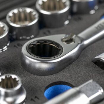 Σετ καρυδάκια διαπεραστά και αξεσουάρ. Όλα τα καρυδάκια είναι τύπου spline, που σημαίνει ότι έχουν μια εξοχή στο κέντρο του πλευρικού τοιχώματος και εφάπτονται στον κοχλία περίπου στο μέσο της πλευράς. Αυτό το ειδικό σχήμα επιτρέπει την αντιστοίχιση των καρυδακιών με εξάγωνα, δωδεκαγωνικά, torx, spline, τετράγωνα και κοχλία με μετρικό ή ίντσας μέγεθος. Η καστάνια, τα καρυδάκια και τα αξεσουάρ είναι διαπεραστά, επιτρέποντας εργασία με μακριά πείρους (αμορτισέρ).