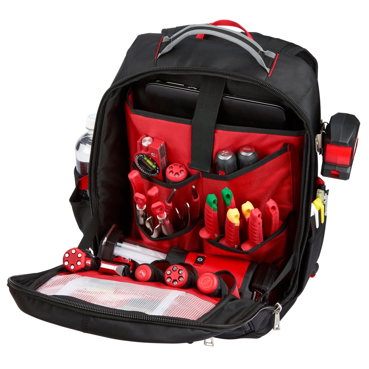 Ενισχυμένη βάση προστατεύει το σακίδιο από φθορά στις καταχρηστικές συνθήκες εργοταξίου Ρυθμιζόμενος ιμάντα στήθους και ιμάντα πρόσδεσης τσαντών-ρολό Βαρέως τύπου και αναπνέων εσωτερικός χώρος σακιδίου κατανέμει ομοιόμορφα το βάρος για μεγαλύτερη άνεση και επιδόσεις στον χώρο εργασίας 22 τσέπες συνολικά συμπεριλαμβανομένης μιας ένθετης τσέπης ηλεκτρονικών ώστε να παρέχει απόλυτη οργάνωση